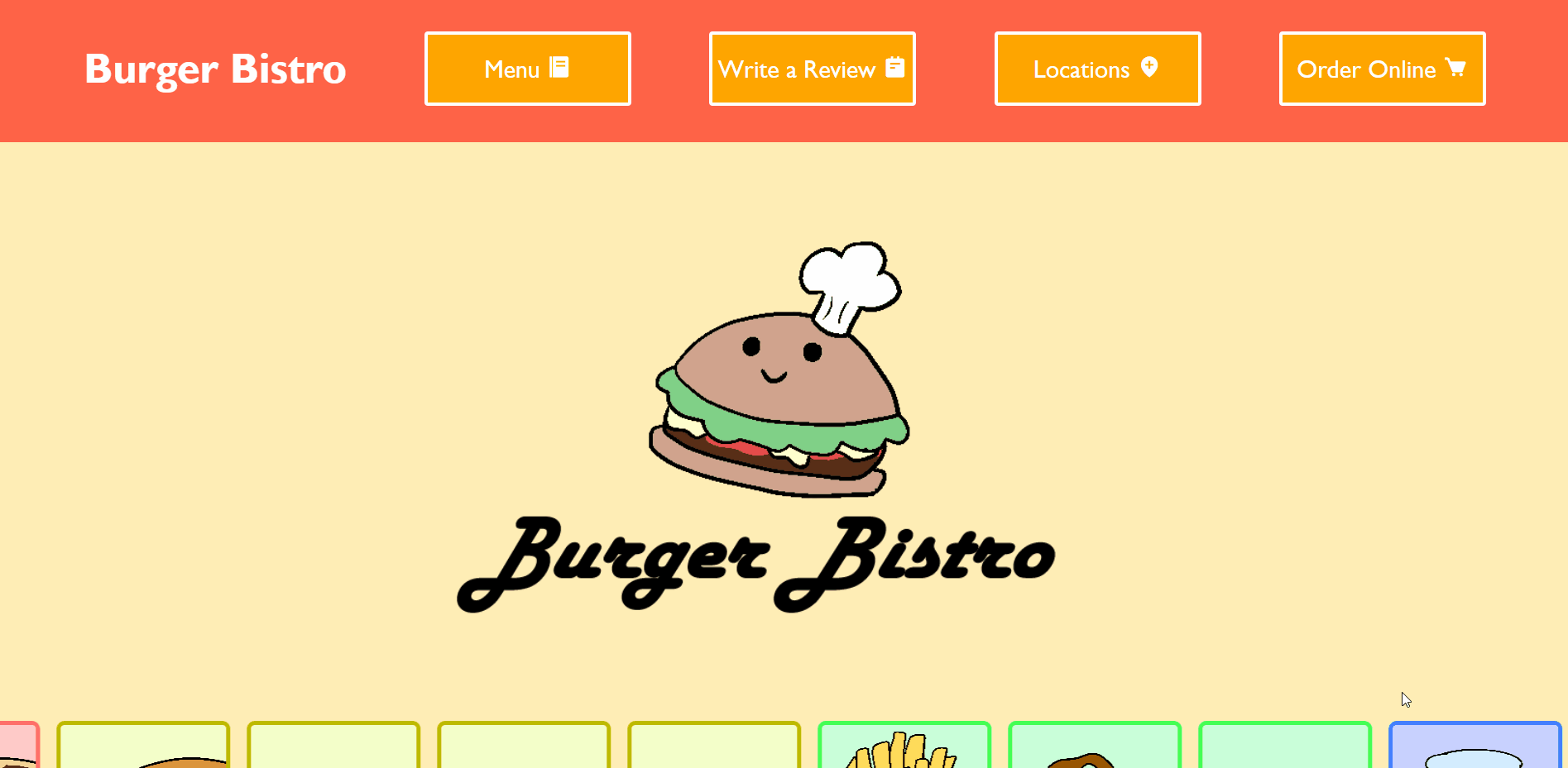 Burger Bistro DX (or Burger Bistro Deluxe) is a personal project based on a group project that I worked on in college. Burger Bistro DX is a fictional restaurant with features that any other fast food restaurant has, but the catch is that this restaurant has a deluxe menu rather than a dollar menu. The original Burger Bistro was incomplete because of the lack of coding knowledge and time. Now it’s completed using HTML, CSS, and Javascript. All images in this project are drawn by me.